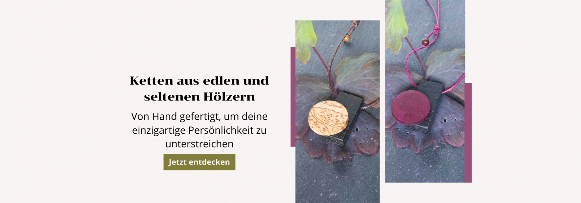 Sind Sie also auf der Suche nach einer einzigartigen Halskette aus Holz, Holzohringen oder Arbändern aus Holz und Edelsteinen, bei HolzSINNfonien finden sie sicher etwas, dass ihrem Geschmack entspricht oder mit dem Sie einem lieben Menschen eine besondere Freude machen können.